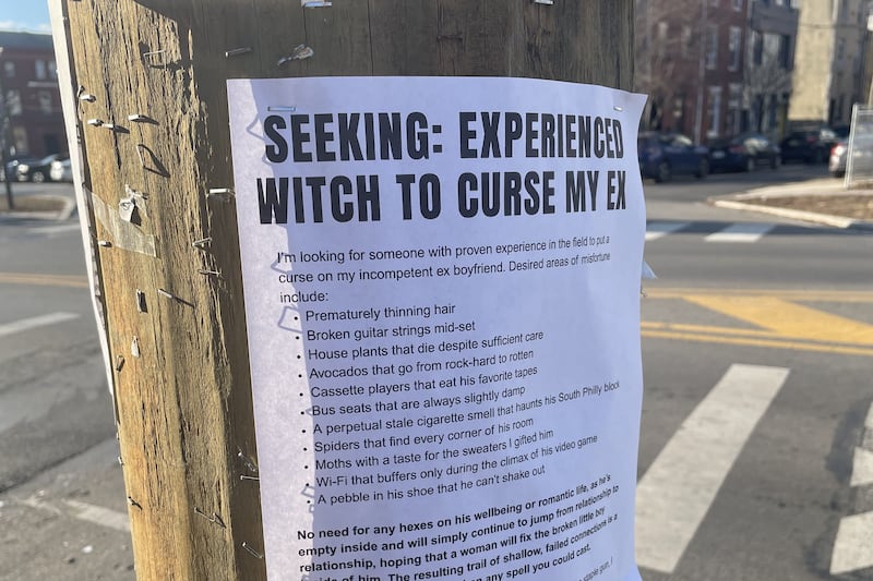 It became a leaflet: “I am looking for: an experienced witch to curse my ex.” She created an email – only for sedate inquiries.